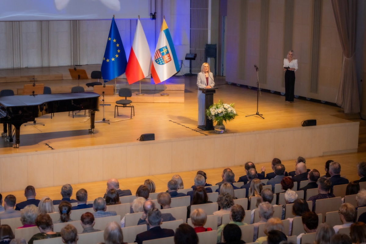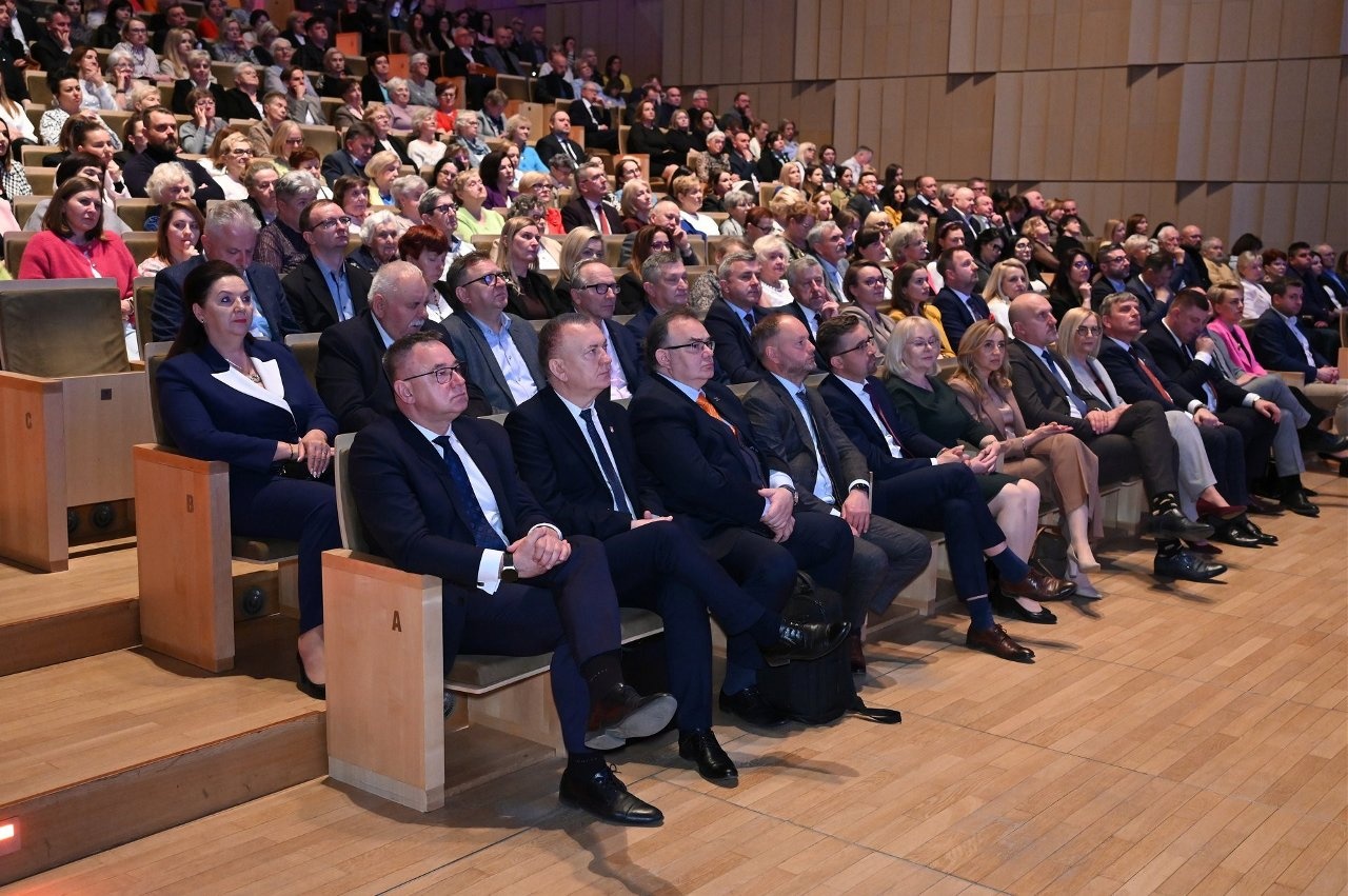 W Filharmonii Świętokrzyskiej w Kielcach w poniedziałek 13 kwietnia br. odbyła się konferencja pt. “Fundusze Europejskie dla Świętokrzyskiego 2021-2027 – wspólnie zmieniamy nasz region”, zorganizowana przez Urząd Marszałkowski Województwa Świętokrzyskiego w Kielcach. Jej celem było zaprezentowanie dotychczasowych efektów inwestowania środków unijnych w ramach obecnie realizowanego programu regionalnego Fundusze Europejskie dla Świętokrzyskiego 2021 – 2027, a także przybliżenie planów na przyszłość, związanych z wykorzystaniem nowych funduszy Unii Europejskiej w regionie. Konferencję otworzyła marszałek województwa Renata Janik. Obecni byli również senator Krzysztof Słoń, wicemarszałek Grzegorz Socha, członek Zarządu Województwa Andrzej Pruś, Katarzyna Kubicka dyrektor Departamentu Wdrażania Europejskiego Funduszu Społecznego, Przemysław Janiszewski dyrektor Departamentu Wdrażania Europejskiego Funduszu Rozwoju Regionalnego, Tomasz Janusz dyrektor Departamentu Rozwoju Regionalnego Urzędu Marszałkowskiego Województwa Świętokrzyskiego , dyrektorzy świętokrzyskich jednostek samorządowych.